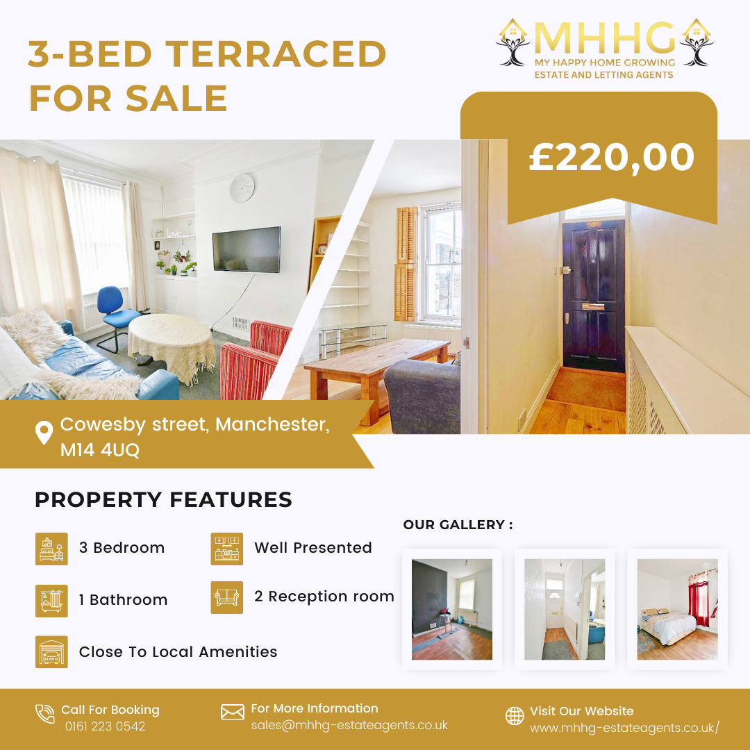 Welcome to Cowesby Street, a charming three-bedroom property located in the heart of Manchester. This inviting home features two spacious reception rooms, perfect for entertaining or relaxing with family and friends. The family bathroom gains from an over bath shower.